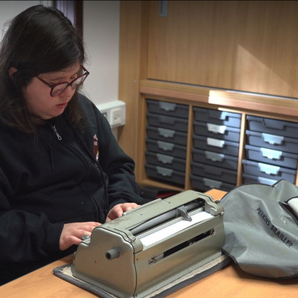 “We teach our learners to write braille initially with a Perkins Brailler which is, in effect, the pen and paper for a braille user, enabling them to produce hard copy braille and read what they have written. As the pupils progress through their braille learning, we introduce refreshable braille technology, such as electronic braille displays and notetakers, which provide opportunities for the young people to access the internet, create and save documents, and send and receive emails, in the same way a sighted pupil would use a laptop or desktop computer.