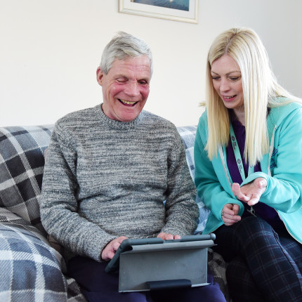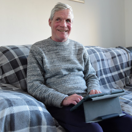 Thankfully Raymond heard an advert for Sight Scotland on the TV and got in touch with us. We provided Raymond with an iPad so he could join his support meetings online, and helped him access them. And we have continued to offer a befriending service, with our community worker Laura McDonald visiting every few weeks. “They saved my life during the pandemic and now I look forward to Laura coming,” says Raymond. “For a blind person, when you live alone like I do, life is darkness, but being in contact with Sight Scotland has given me some light in my life.”