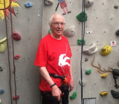 A 95-year-old World War Two veteran with a passion for rock climbing has been scaling walls once again with the support of a sight loss charity.