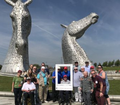 Veterans with Sight loss take on Scottish War Blinded 500 Miles Challenge with group walk at The Kelpies